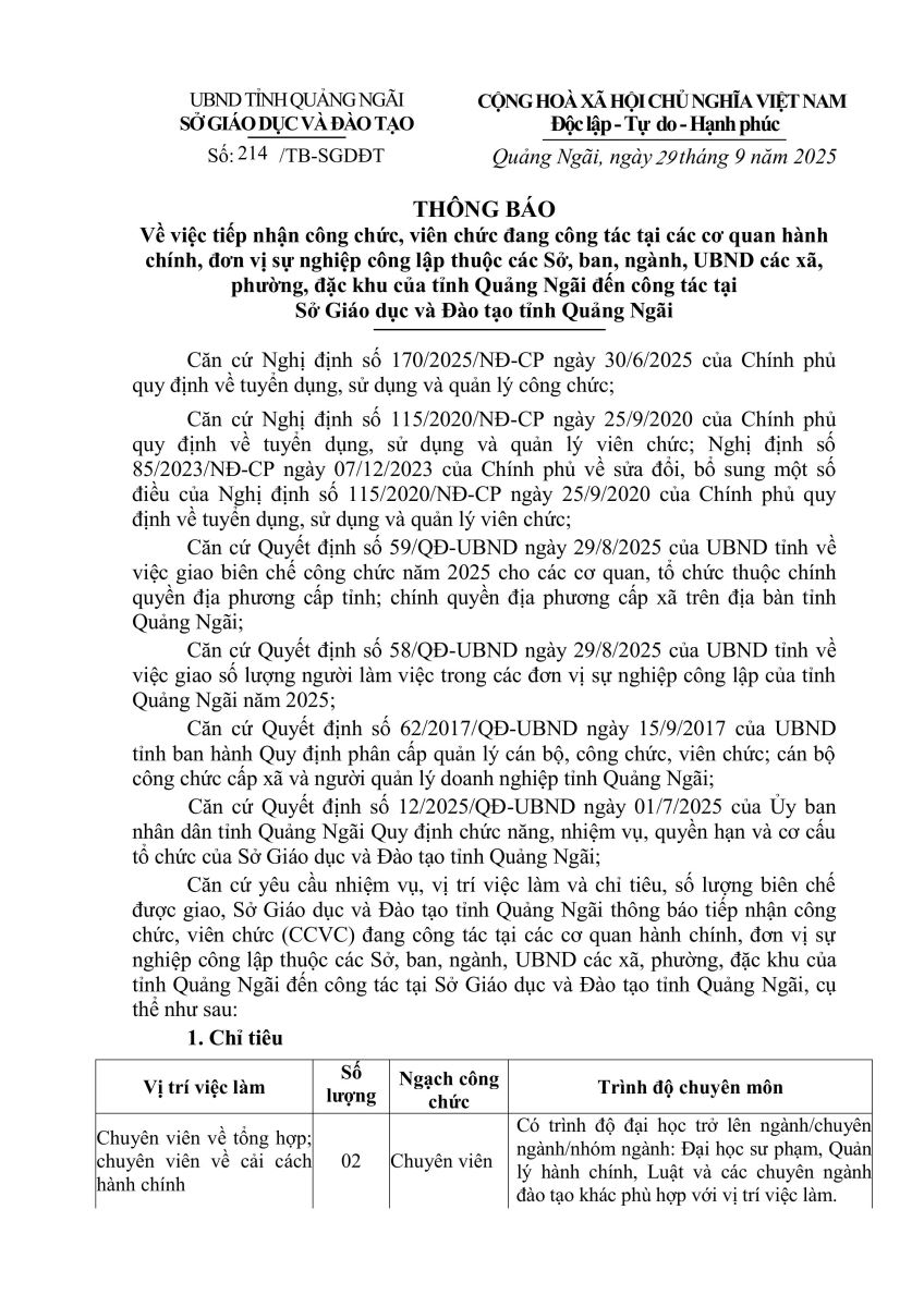 1878/SVHTTDL-TTBCXB 3/11/2025 Tuyển dụng giáo viên cho các đơn vị sự nghiệp công lập trực thuộc Sở Giáo dục và Đào tạo năm 2025 get_app