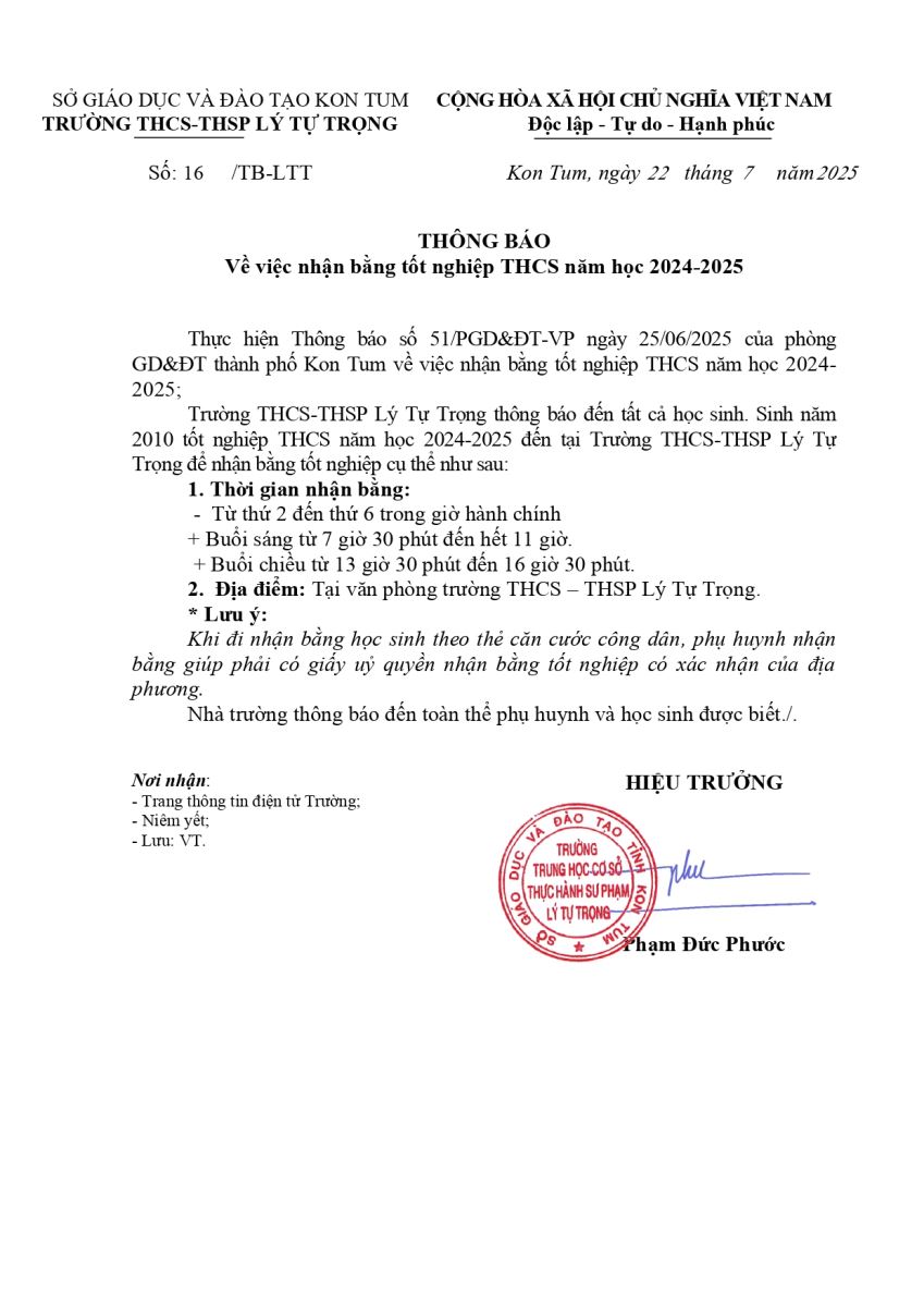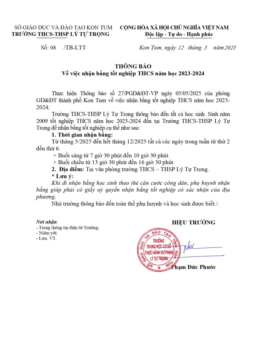 TRANG THÔNG TIN ĐIỆN TỬ TRƯỜNG THCS - THPS LÝ TỰ TRỌNG, TỈNH KON TUM