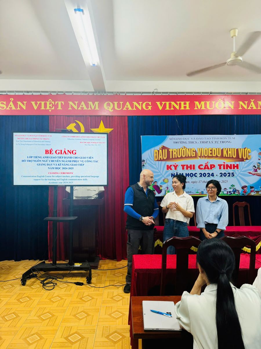 Khóa học được tổ chức với sự phối hợp giữa nhà trường và Công ty TNHH Education Solutions Việt Nam, hướng đến việc nâng cao năng lực sử dụng tiếng Anh trong giảng dạy, đặc biệt là tiếng Anh chuyên ngành và kỹ năng giao tiếp thực tế trong môi trường sư phạm hiện đại. Trong suốt thời gian diễn ra khóa học, hơn 25 giáo viên từ các tổ chuyên môn đã tham gia đầy đủ, nghiêm túc và tích cực, mặc dù vẫn hoàn thành khối lượng công việc chuyên môn và các hoạt động giáo dục khác tại nhà trường.