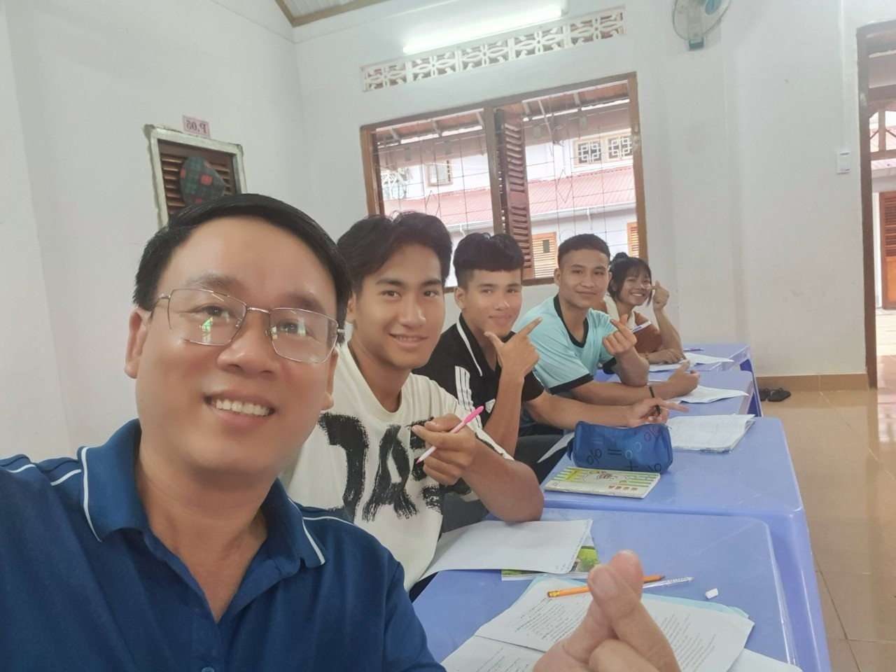 Thầy hiệu trưởng Phạm Đức Phước trực tiếp dạy hè cho các em tại làng phong Đăk Kia