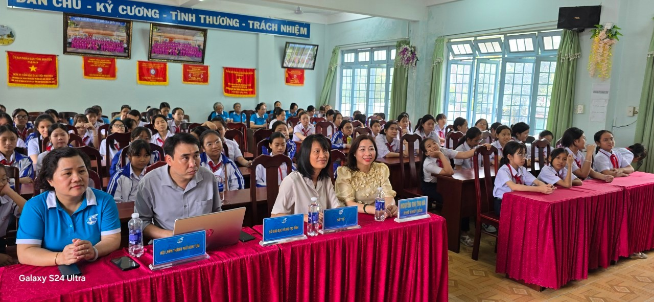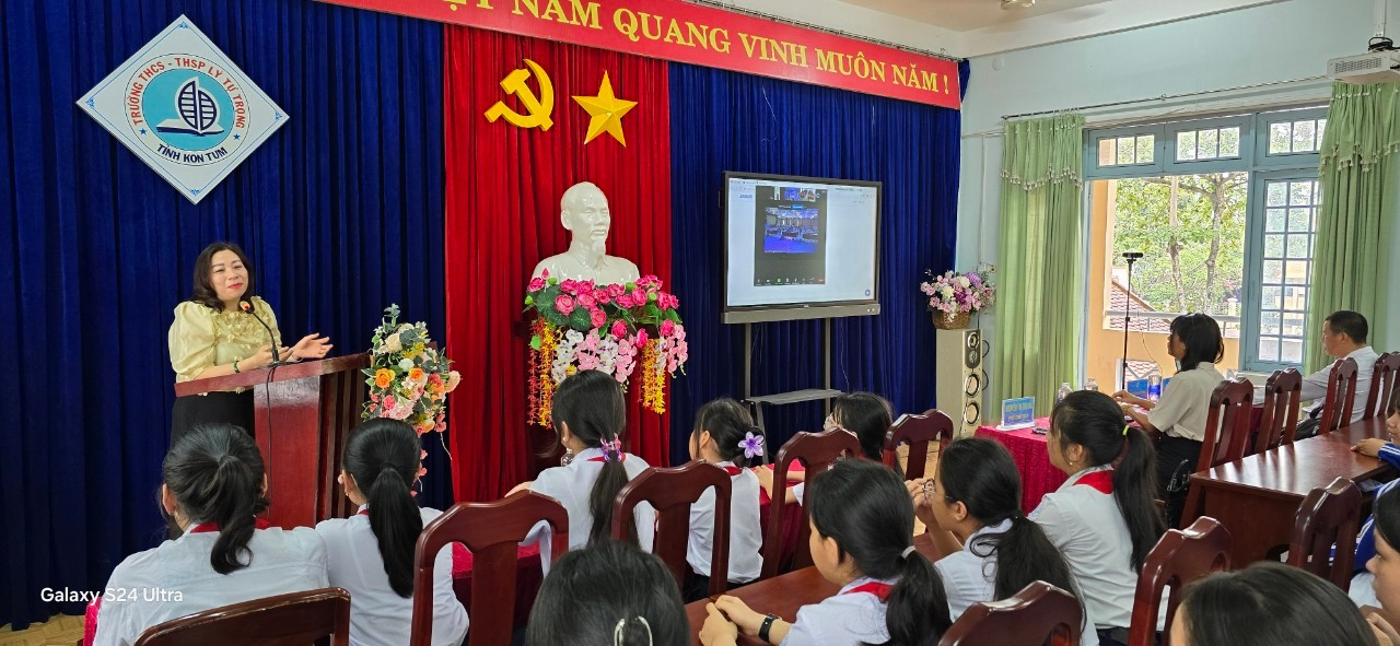 Vào lúc 8 giờ 00 phút, ngày 28/5/2024, tại Trường THCS – THSP Lý Tự Trọng đã tổ chức khai mạc hoạt động truyền thông (trực tuyến). Với sự có mặt đầy đủ đại diện các cơ quan, đơn vị. Về phía các cơ quan đơn vị có Đồng chí Nguyễn Thị Thu Hà - Phó chủ tịch Hội LHPN tỉnh, đại diện lãnh đạo Hội LHPN thành phố Kon Tum, đại diện Sở Y tế, Sở Giáo dục và Đào tạo; về phía nhà trường, có thầy Nguyễn Mạnh Hảo – Tổng phụ trách Đội, giáo viên chủ nhiệm các lớp có học sinh tham dự (6A1, 6A2, 6A3, 6A4, 6A5) cùng gần 100 HS nữ/5 lớp khối 6.