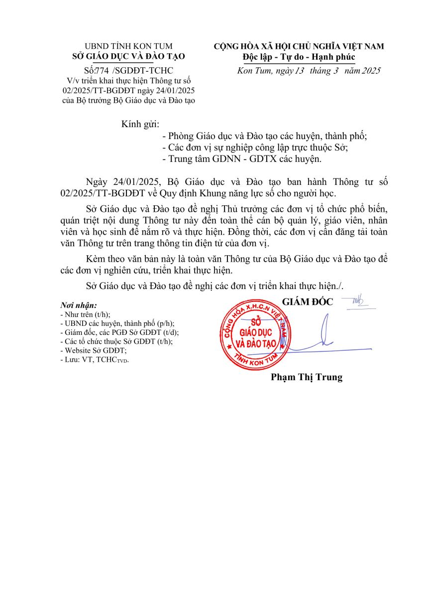 V/v triển khai thực hiện Thông tư số 02/2025/TT-BGDĐT ngày 24/01/2025 của Bộ trưởng Bộ Giáo dục và Đào tạo
