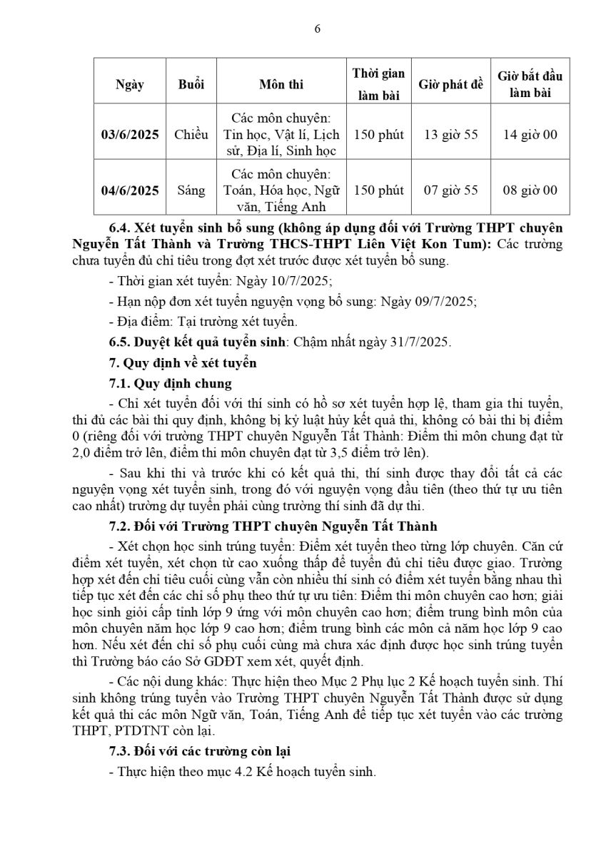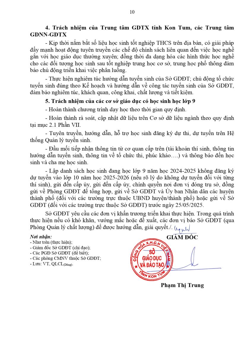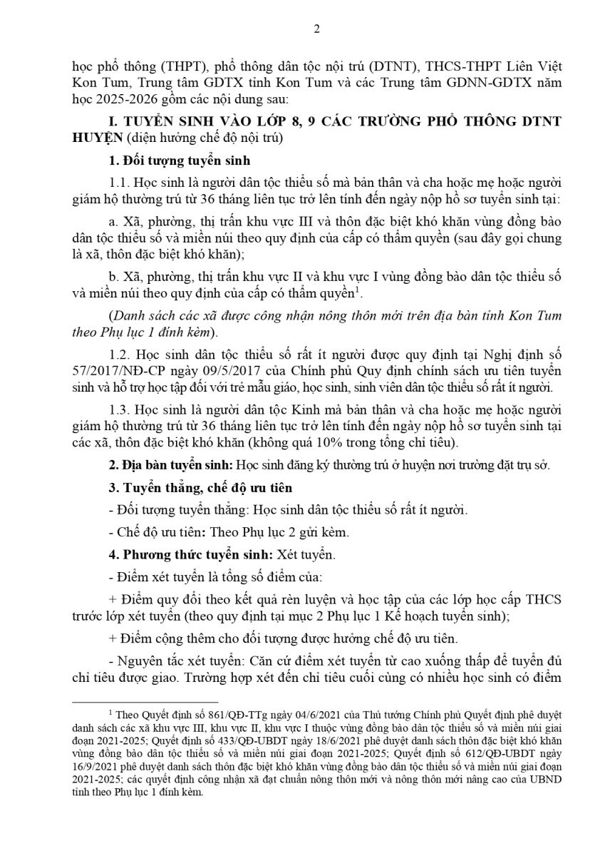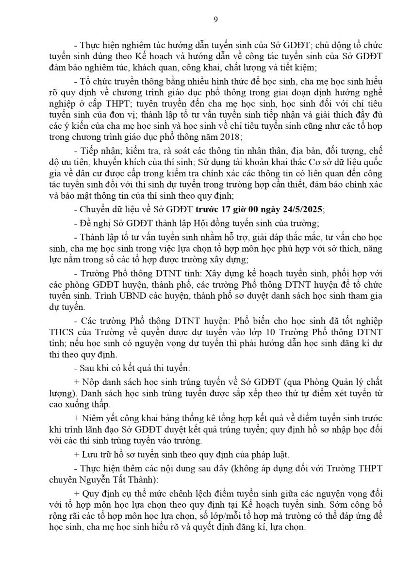 Về việc hướng dẫn công tác tuyển sinh năm học 2025-2026 đối với các trường THPT, Phổ thông DTNT, Trung tâm GDTX tỉnh Kon Tum và Trung tâm GDNN-GDTX các huyện