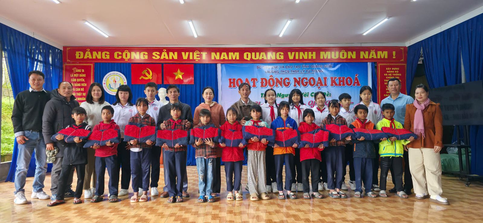 Trong tiết trời mùa đông se lạnh của những ngày cuối năm 2025, hoạt động thiện nguyện mang tên “Gửi hơi ấm – Trao yêu thương” đã diễn ra đầy cảm xúc và ý nghĩa, thể hiện tinh thần nhân ái, sẻ chia của tập thể lãnh đạo, giáo viên, nhân viên, học sinh và phụ huynh Trường THCS Thực hành Sư phạm Lý Tự Trọng. Sáng ngày 23 tháng 12 năm 2023, đại diện tập thể lãnh đạo, giáo viên, nhân viên, học sinh và cha mẹ học sinh Trường THCS Thực hành sư phạm Lý Tự Trọng đã tổ chức hoạt động ngoại khóa tại hai điểm trường thuộc xã Kon Plông, tỉnh Quảng Ngãi, nhằm mang đến những món quà ý nghĩa và tiếp thêm động lực cho các em học sinh vùng cao vượt qua mùa đông khắc nghiệt.
